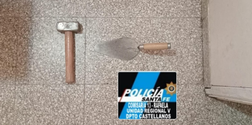albañil y un martillo, elementos que fueron hallados en el lugar dentro